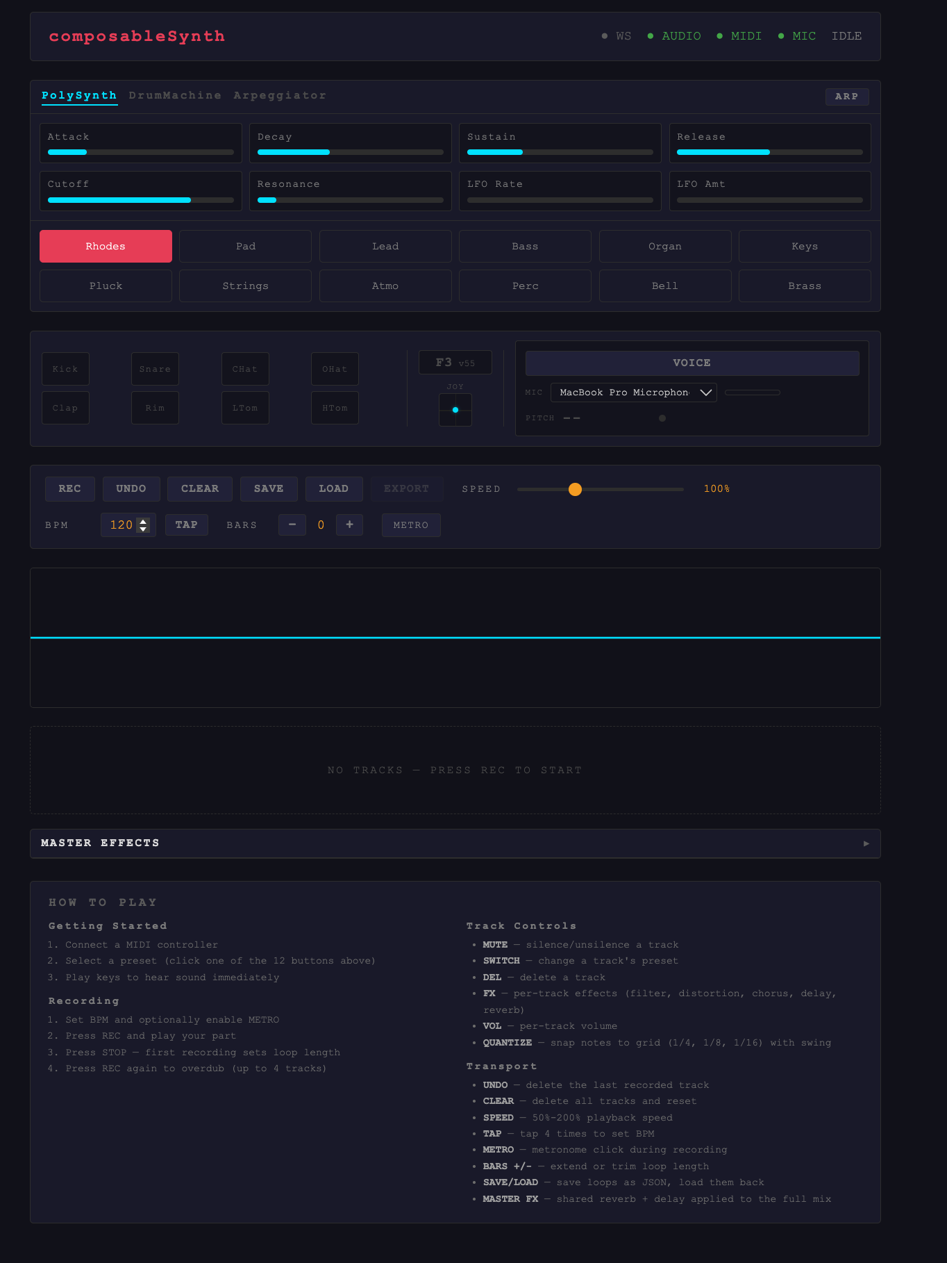 looping as first-class thing. Componentized so I can layer some things. Takes MPK-mini + microphone as inputs. Heavily, heavily customizing software to match MPK-mini EXACTLY. Have had to remind agent of that many times, that this is bespoke software for one user with one device.