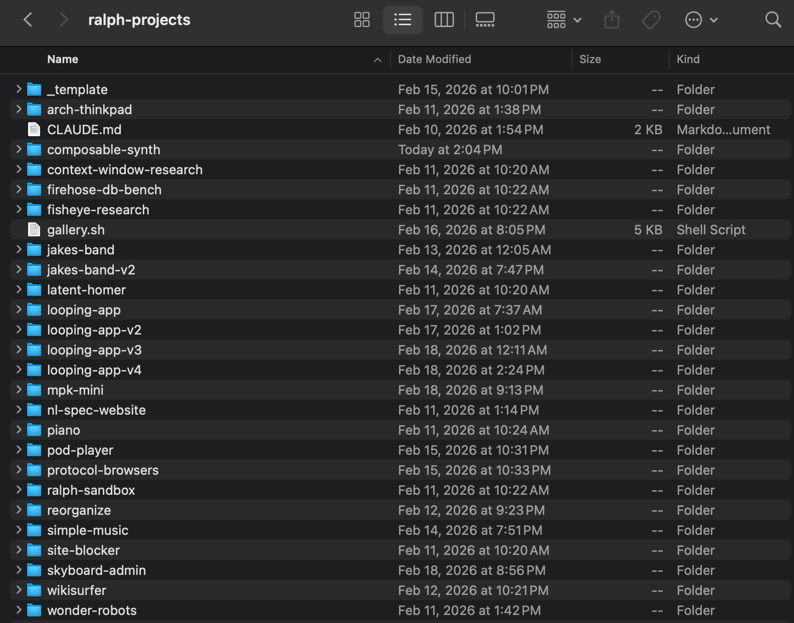 Geoffrey Huntley (of the Ralph method) describes working this way as like throwing pottery. While I've never thrown a pot, that metaphor has been in my brain as I've worked, and I see my projects in this directory kind of like pots that I've made learning to practice a technique (none of them are particularly museum-quality or even symmetrical).